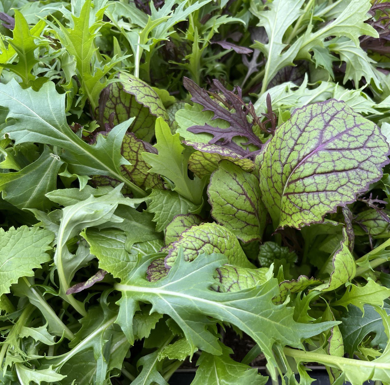 Darin enthalten sind Ta-tsoi, Kyonamizuna und Senf